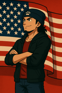 "Power & Strength" Mayne Doggz flexing with full patriotic power. The �1776� on his shirt isn�t just a number�it�s a statement. With the bold, bright flag behind him and that confident stance, he�s channeling rebellion, legacy, and street-born pride all in one frame. |
