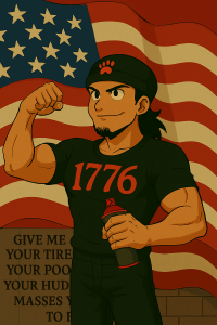 "Power & Strength" Mayne Doggz flexing with full patriotic power. The �1776� on his shirt isn�t just a number�it�s a statement. With the bold, bright flag behind him and that confident stance, he�s channeling rebellion, legacy, and street-born pride all in one frame. |
